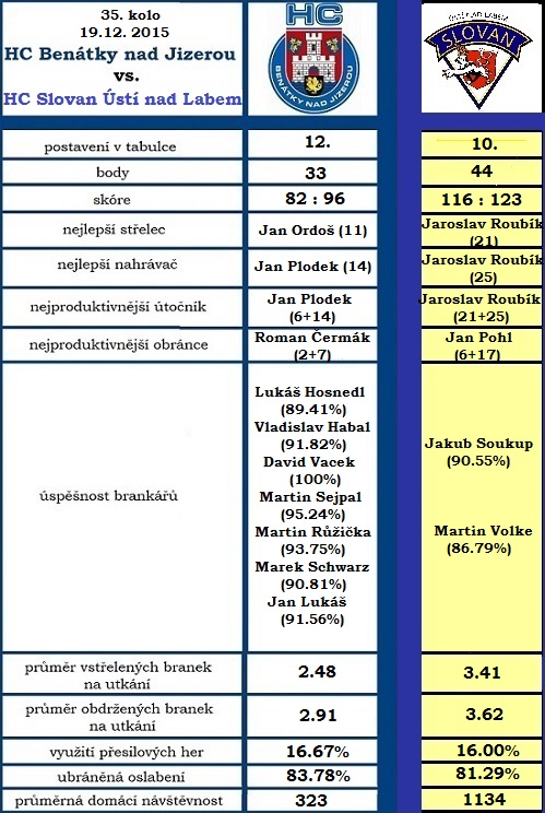 12. 12. 2015, 33. kolo: HC Benátky nad Jizerou – AZ Havířov 1:2