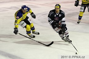 Téměř v celé třetí třetině hrály prim především Benátky, Slovan se soustředil spíše na bránění a nechtěl rozhodně udělat žádnou chybu. Benátky také ve třetí dvacetiminutovce svého soka výrazně přestřílely, avšak kýženého vyrovnání se nakonec nedočkaly. V několika situacích viselo vyrovnání doslova na vlásku, ale Ústečtí vše přestáli bez úhony. V úvodu třetí části měl dobrou příležitost Josef Skořepa, jehož důraz před Orcrtem málem slavil úspěch. Ležícího brankáře hostí ale nepřekonal. Domácí byli i nadále aktivnější, jenže obrana Ústeckých v čele s ostříleným brankářem Orctem útočným nátlakům Středočechů odolávala. Z protiútoku zakončoval nebezpečně Růžička, jenže Blažíček vyrazil ramenem. Na druhé straně největší možnost na vyrovnání neproměnil Skořepa, jenž sám před Orctem mířil jen do jeho lapačky. Ani téměř minutová závěrečná power play na vyrovnání nestačila, Lvi těsný náskok uhájili.