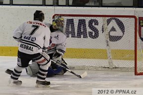 Třetí třetina se hrál takříkajíc z povinnosti. Litoměřičtí totiž s přehledem kontrolovali svůj náskok a nedovolili soupeři téměř nic. Domácí se sice snažili bušit na vrata litoměřické pevnosti, ale nemohli nalézt recept na překonání Petra Přikryla. Ten totiž s ledovým klidem lapil všechny pokusy Benáteckých, bylo již v utkání celkem čtytřiatřicet. Také brankář Blažíček si připsal několik povedených zákroků, jako například proti pokusu Nováka po jeho vyjetí zpoza branky. Martin Novák se pak v minisouboji s Blažíčkem utkal ještě jednou. I tentokrát byla úspěšnější lapačka benáteckého gólmana. Gól domácím opravdu souzen nebyl. Ctibor Jech totiž v samém závěru patrně trefil tyčku Přikrylovy klece. Zkušený gólman vychytal na benáteckém ledě čisté konto a mohl tak se svými spoluhráči oslavit veledůležité tři body.