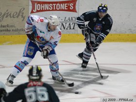 Hned po půlminutě nastaveného času byl vyloučen chomutovský bouřlivák Radek Duda a před domácími se rázem naskytla výhodná přesilovka 4 na 3. V její půlce se ale poměr sil na ledě srovnal, neboť za katr putoval Loskot. Severočeši byli v prodloužení aktivnějším týmem a jedovatou střelu obra Posmyka musel vyrážečkou krotit spolehlivý Nedvídek. Když už se zdálo, že zápas dospěje k nájezdům, ujela dvojice Kica a Martin Krupka. Druhý jmenovaný se dostal na brankovišti k dorážce a nadvakrát dostal kotouč až za Hanuljakova záda – 3:2 pp!