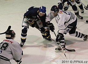 Třetí perioda byla ve svém úvodu opatrná. Na samém počátku 49. minuty ovšem Lvi dosáhli vyrovnání. Podíl na této brance měl určitě Roubík, který vybojoval puk a poté ideálně předloužil na teč Danielu Boháčovi a Blažíček byl v tuto chvíli bezmocný - 2:2. Uběhlo však pouhých třicet vteřin a Benátky měly zpátky vedení. Jan Jaroměřský využil zakrytého výhledu Francouze a rozjásal domácí příznivce - 3:2. Klobouček poté těsně minul a prakticky z protiútoku Král vyslal na zteč Tomáše Klimta, jehož dělová rána se zastavila až za Francouzem - 4:2. V tu chvíli by málokterý Benátčák nevěřil ve výhru. A přeci. Třicet vteřin stačilo Slovanu na vyrovnání. Střela Jaroslava Roubíka propadla Blažíčkovi až do sítě a hosté byli rázen na dostřel - 4:3. Zvláště pak, když kapitán Jan Klobouček prakticky ihned poté od modré čáry trefil přesně cíl - 4:4.